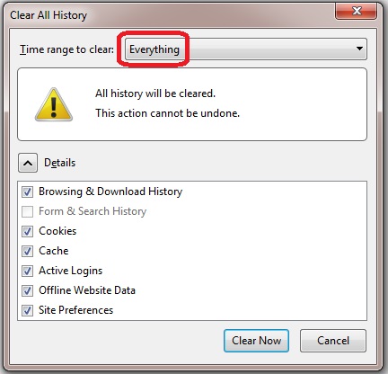 5. On the Clear All History screen, select “Everything” from the drop down list