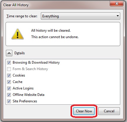7. Click “Clear Now”