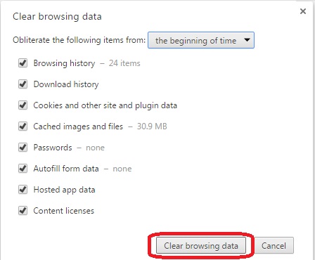1. Click on “Customize and control Google Chrome” (top right corner) 2. Click on “Settings” 3. Click on “History” (left hand side of the screen) 4. Click the button that says “Clear browsing data…” 5. In the Clear browsing data window click the button that says “Clear browsing data” 6. Once finished you will be returned to the “Settings” screen 7. Restart your browser and try the page again