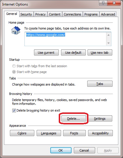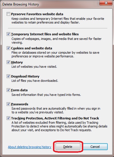 6. Click on the "Delete" button, this will open the "Delete Browsing History" window